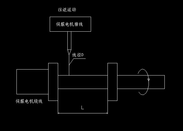 主軸轉一周,排線電機移動一根線的距離,排滿一層后反向運動.如此反復.主軸和排線電機采用比例控制.