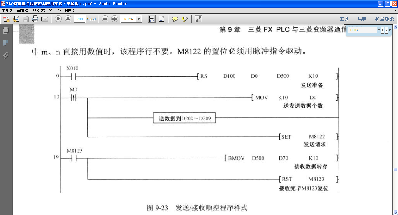 樓上正解,是手冊有誤,set m8122前先把要發送的數據寫進D100~D109中去