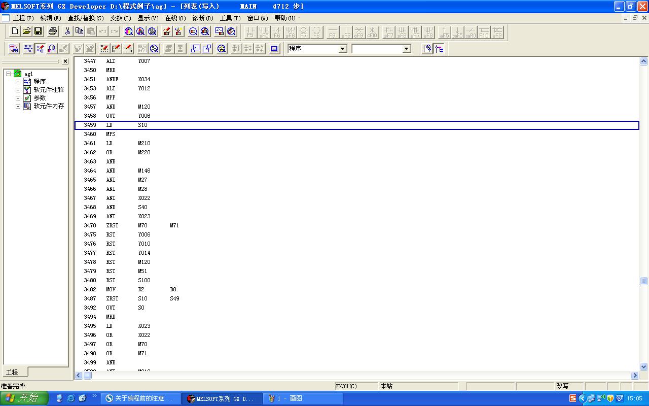在很多的梯形圖中,由于著者可能會(huì)有一些不符合規(guī)定的編程手法,導(dǎo)致部分程序無(wú)法顯示出來(lái)以一片黃色的區(qū)域來(lái)顯示,這時(shí)我們可以這么來(lái)處理:首先將程序轉(zhuǎn)換成指令表程序,然后再在對(duì)應(yīng)不好地方修改太冗長(zhǎng)的程序,把它分解成若干的小程序,或是有錯(cuò)誤的地方也可以修改,修改之后再轉(zhuǎn)換成梯形圖程序,如下幾個(gè)圖片所示: ![]() ![]() ![]() |