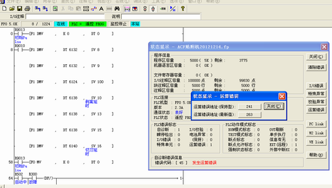我這有臺設備,前段時間突然有個動作不對了,其他動作全部正常,PLC上輸出端一個接電磁閥的觸點一直有輸出不會斷電,然后我就跟其他一樣的設備調換了PLC,確認是PLC的那個觸點一直有輸出導致的,初步懷疑PLC的那個觸點損壞,之后我就想把程序修改一下,換一個觸點,但是PLC程序有密碼,因為設備程序我有備份,當時也就沒想找解密軟件解密,直接就強制清除PLC程序和密碼了,當我把備份的程序上傳至PLC后,在上傳完后,就顯示有PLC運算錯誤,無法從PORG轉到RUN,請問這個PLC是不是已經損壞?謝謝