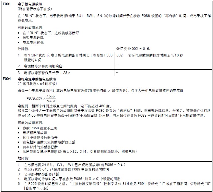 各位大俠,西門(mén)子6ra70裝置偶爾報(bào)F001和F004,復(fù)位就好了,檢查裝置本身沒(méi)有問(wèn)題,外圍電路和電網(wǎng)品質(zhì)也沒(méi)什么問(wèn)題。請(qǐng)問(wèn)能否用P820參數(shù)將F001與F004這兩個(gè)故障給屏蔽掉呢?