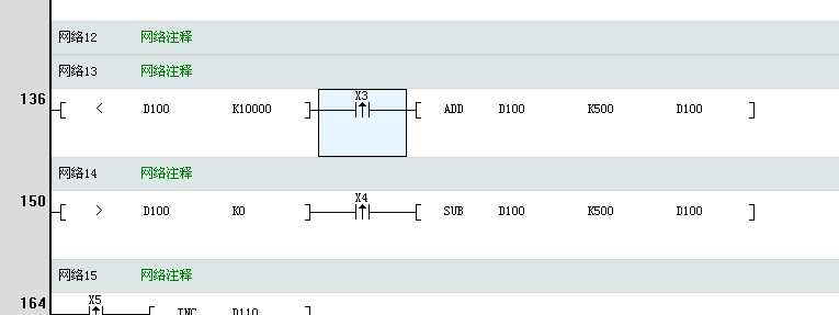 第136步。d100要小于10000才接通,第一次按x3才加500存回去,這句沒問題。我想你別的地方d100又進行其它運算,沒寫好才這樣。這么久搞好了吧