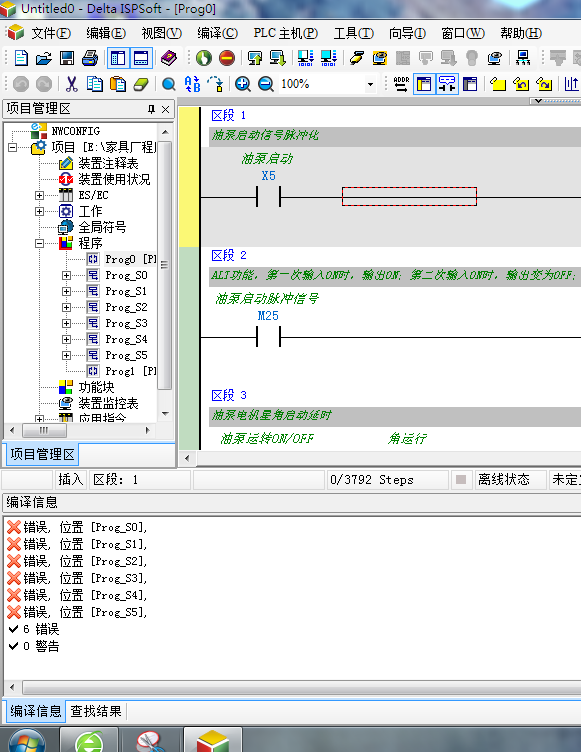 最近接觸到一個臺達的ES系列的32點的PLC,上傳上來的程序,啥也不動,直接點編譯,,提示我錯誤,附件里是我截屏的圖,,,有懂臺達的朋友,幫忙看看,,,我第一次搞臺達這個,感覺,使用上,不如大品牌用著順手,,,,呵呵,,可能是我用三菱用習慣了吧,,,嘿嘿,,,請大家幫忙,,謝謝