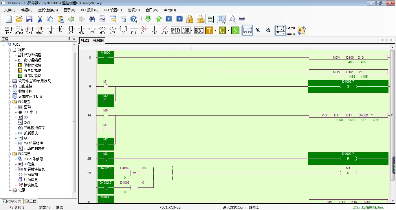 請問 各位大師,信捷PID溫度控制怎么用呢?我現在照手冊上面的樣例程序使用時,只要超過設定溫度就停止加溫了,然后溫度掉到常溫時都不加熱了,不知道這是什么情況啊,還煩請各位大師指點一下啊? 在此先行謝過了!