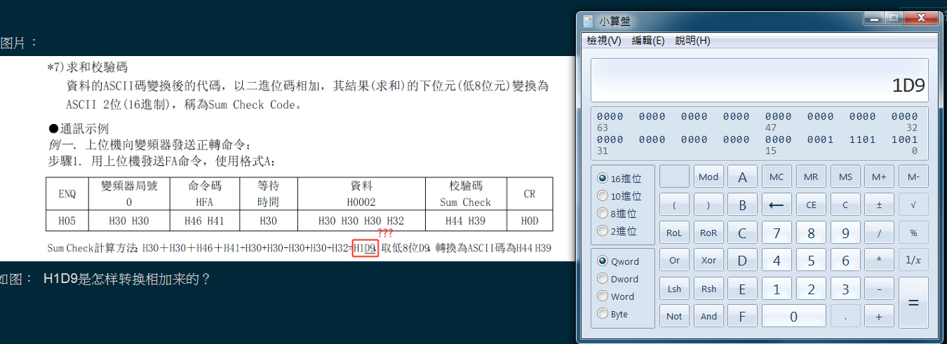 電腦自帶的小算盤程式有程式設(shè)計(jì)師模式,選擇16進(jìn)位,將全部數(shù)值加總的結(jié)果就是1D9