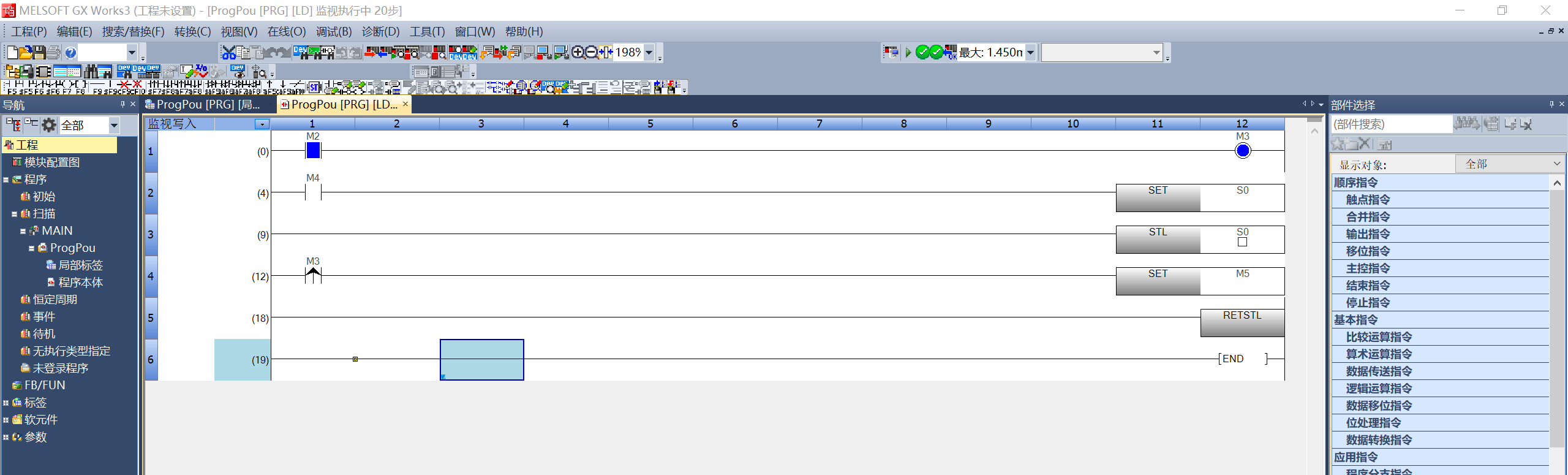 問題就在于STL指令在不執行的時候它是跳轉狀態,就是STL到RETSTL之間沒有進行掃描了,在你通S0的那個掃描周期里,STL到RETSTL之間的M3確實是上升沿。還有一個要注意的就是STL從ON變到OFF的時候,是有一個OFF狀態的執行,也就是有一個掃描周期,STL到RETSTL之間會進行掃描。