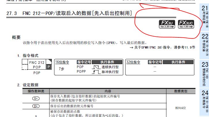 而POP指令僅標(biāo)注FX3U,表明其僅支持FX3U機(jī)型。