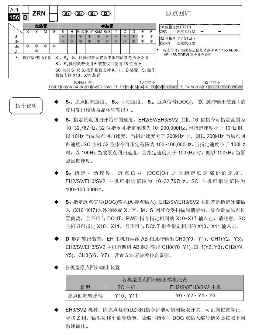 臺達(dá) DVP PLC 好多型號不支持回原指令,但是也有DRVI DRVA 指令,比如 ES EX SS SA SX系列等,太扯淡了!!!有些只支持ZRN回原方式也不是很完美!!!請教一下大俠們,有沒有回原的好方法??? |
