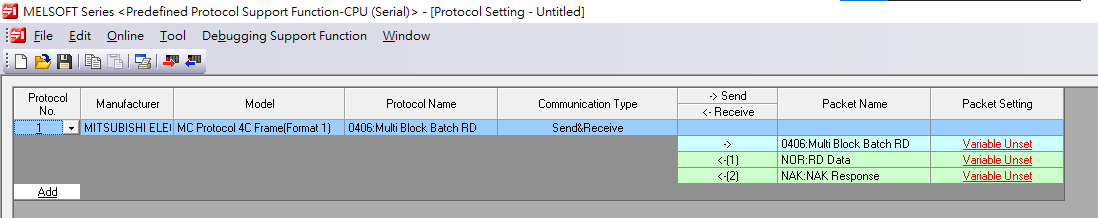 請問FX5U想透過predefined protocol設定MC協議報文與FX2N通信如何設置呢