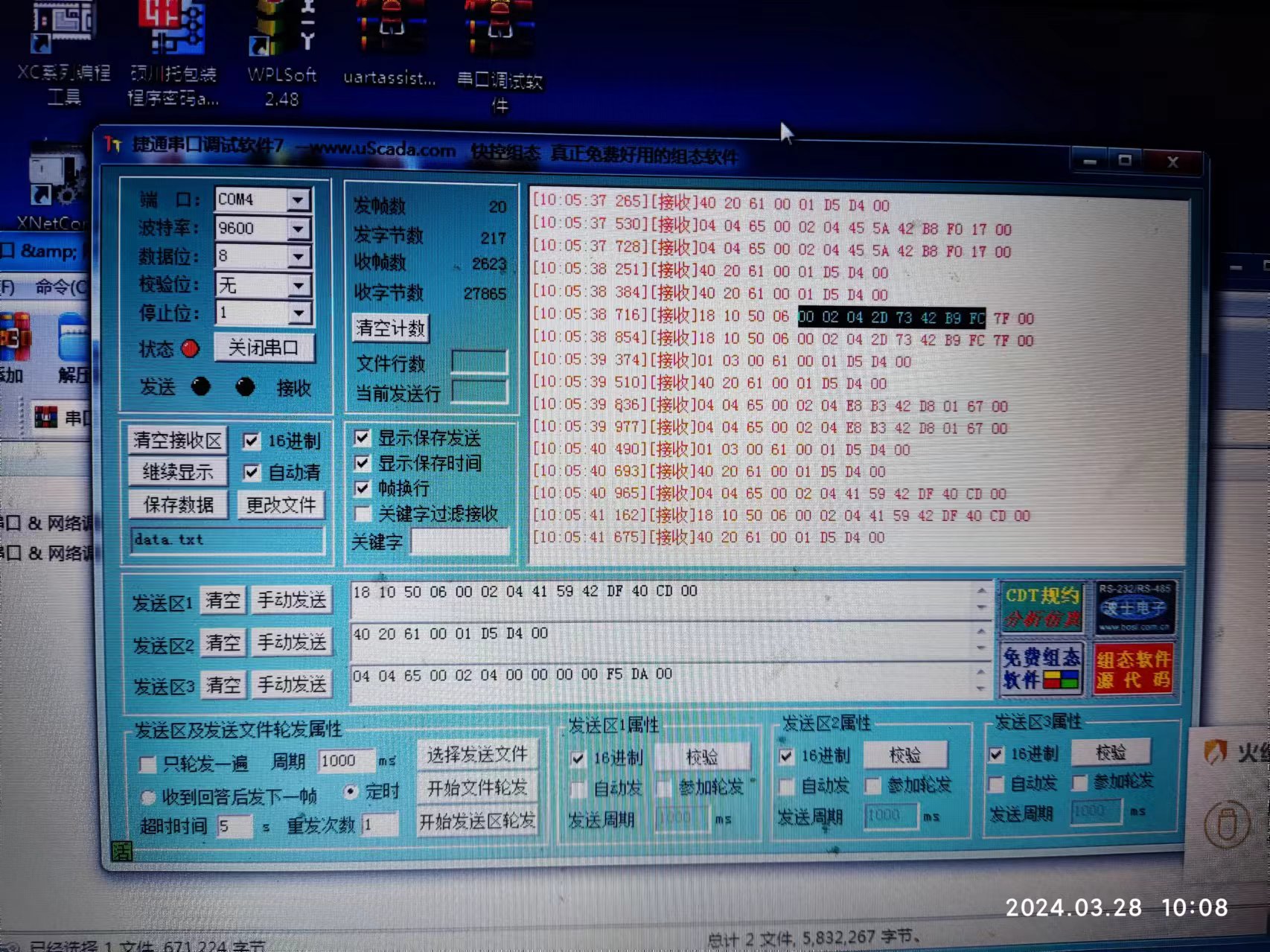 發送的通訊碼不對,PLC要發三個讀24號站的碼,轉成16進制數就是18開頭,一 個是讀01號站的,是01開頭,按理應該是有3個18開頭的碼和一個01開頭的碼,但監控數據上看,只有一個01開頭的碼,和一個18開頭的碼,另外出現了04開頭和40開頭的碼,這是不對的呀,另外后面多了一個00的數據,