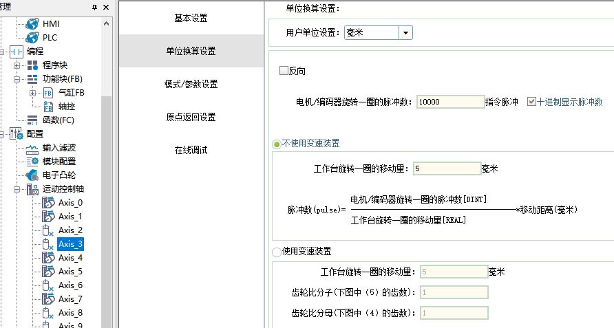還要看你步進控制器那邊具體設了多少脈沖走一圈,要跟軟件上設的單圈脈沖數一樣,然后軟件一圈移動量設置為4。后面你定位指令那設置多少,就是走多少。