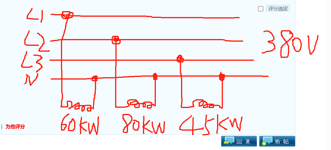 功率都給了 計算方法一樣的。考慮三項動平衡的話 按單項最大功率選,空開選型的重載*2.5,輕負載1.5 選型就好
