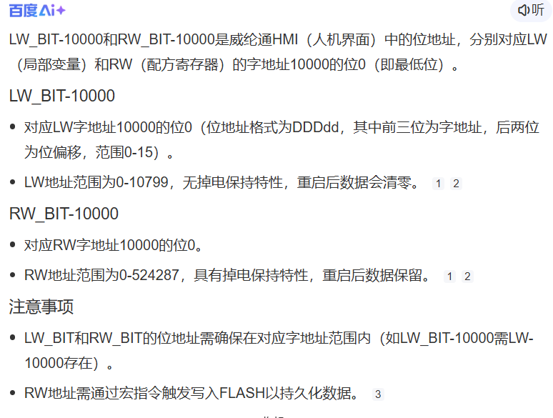 樓上的Ai答案關于LW_Bit部分說法說錯的,可以用威綸通軟件實際檢驗一下是否正確