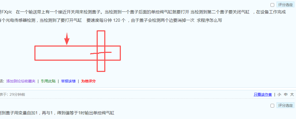 引用引用第7樓yezouping于2026-02-27 16:26發(fā)表的 :應(yīng)該是有兩個氣缸,第一個氣缸與第一個接近開關(guān)配合,檢測到第一個瓶蓋時第一個氣缸打開,檢測第二個瓶蓋時第一個氣缸關(guān)閉。 第二個接近開關(guān)與第二個氣缸配合,第二個接近開關(guān)檢測到產(chǎn)品時,第二個氣缸打開。那第二個氣缸啥時候關(guān)閉呢。