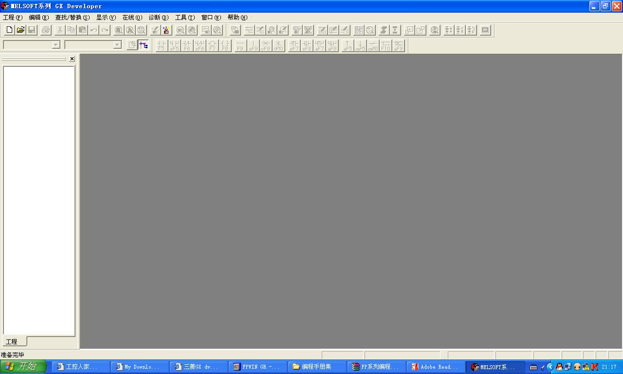 三菱GX dveloper8.34不能用,打開后是不能操作的灰色界面,怎么辦。