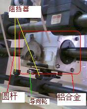 而通過下面的阻擋器《導向輪》就可讓白色的鋁合金在圓桿上來回走動了.