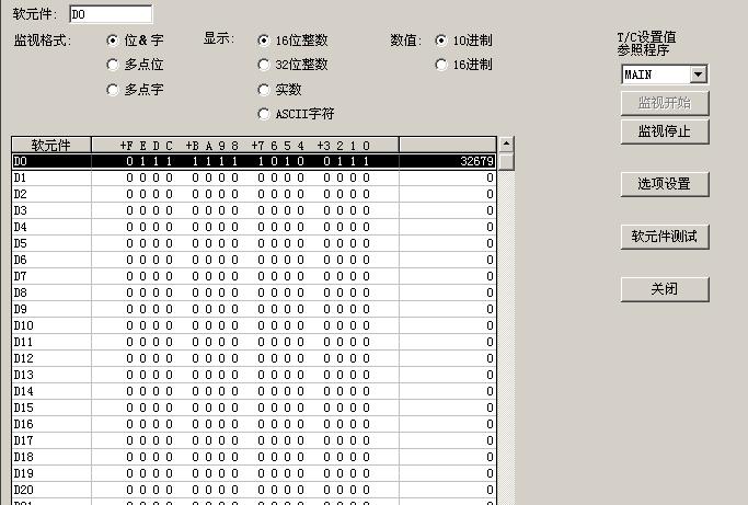 這個程序我分別監控D0和D1 。怎么D0=-32767,D1=0我試了很多,大于32767(二進制的15個1)的數,D0都為負數,D1都為0,這是為什么?望高手能給解答。