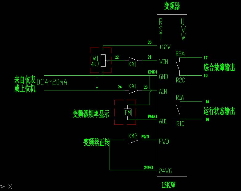 最近剛做了個帶變頻器的柜子,有0~10V和4~20mA兩種外部給定方式。該變頻器配15KW的電機