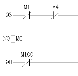 三菱PLC的MC指令,如圖,第93步到第98步是怎樣編輯的?尤其是左邊母線中間的常開點N0 M6是怎樣編輯的?