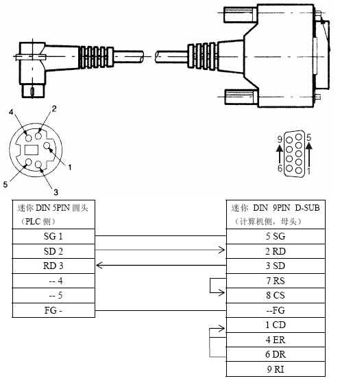 請各位高手給畫一條松下PLC與電腦RS232端口的連接線圖