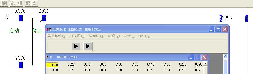 選擇GX Simulator的初期畫面的[起動菜單]-[軟元件存儲器監視].