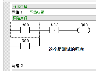 描述:這個是測試程序,M0.0對應(yīng)啟動按鈕,M0.2對應(yīng)關(guān)斷,Q0.0對應(yīng)指示燈(電機(jī))。