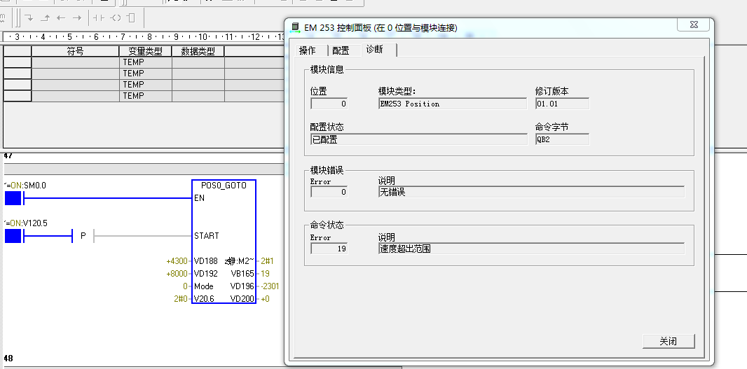 小弟最近做一項目西門子200,em253模塊在使用的過程中不定期會報警,報警說明是;速度超出范圍,但是我把速度調到很低2000多還是偶爾會報警,不知怎回事,打電話西門子客服,說是什么把所有程序刪了只寫這段程序再試,又說是什么電腦不是正版系統什么的,搞的我真的無話可說,請高手指點一下,謝謝