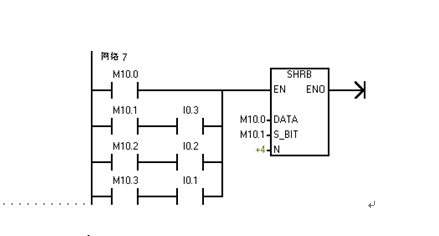 左邊輸入條件滿足時,將M10.0的狀態(tài)移入M10.1為首的四位連續(xù)地址中,輸入應該要用邊沿指令