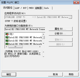 檢查選項---設置PG/PC接口;在為使用的接口分配參數中選擇電腦本身的網卡如圖Intel(R) PRO/1---MT Network.TCPIP(網卡不同,如圖顯示的名稱也各不相同) 注意:此處選擇需區分電腦的有線網卡和無線網卡。