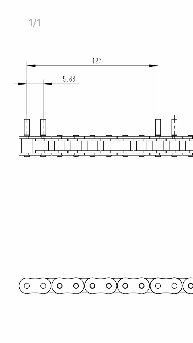 已知鏈條節(jié)距15.875,鏈輪齒數(shù)48, 15.875*48 求得分度圓周長為762mm
