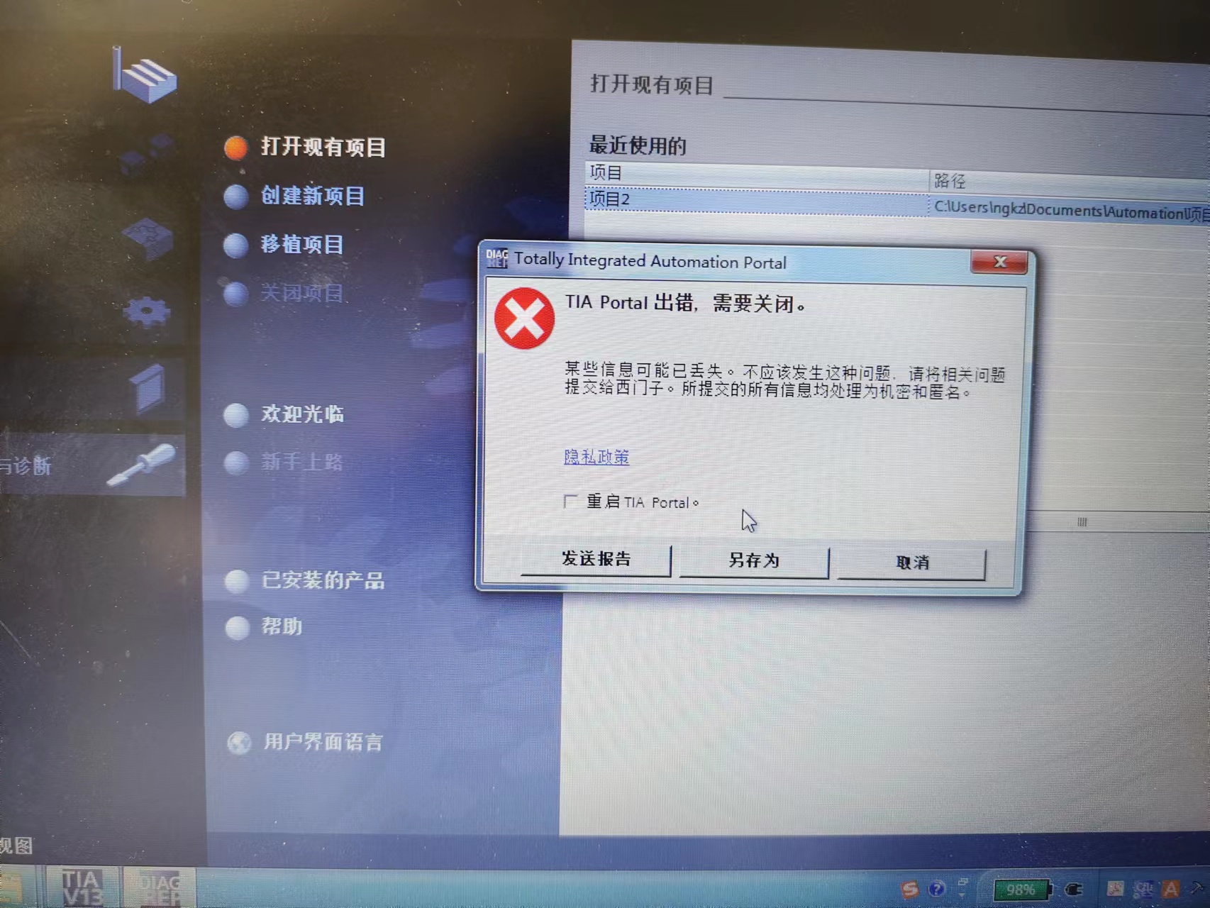 別人給的TIAV13的項(xiàng)目程序,程序打開(kāi)時(shí)報(bào)錯(cuò),麻煩哪位大神幫忙打開(kāi)后畫(huà)面截個(gè)圖,感激。!