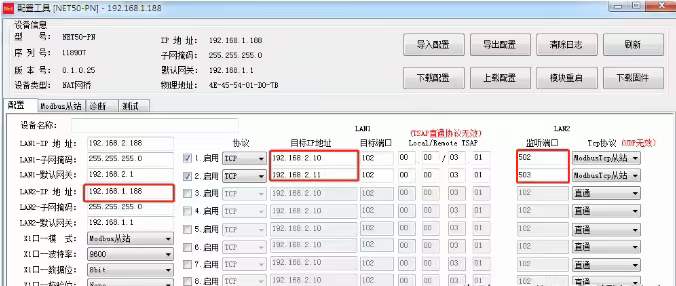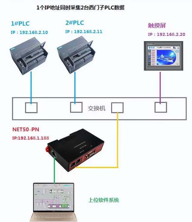 ![]() 通過1個IP地址同時(shí)采集2臺西門子S7200 Smart的數(shù)據(jù) 一、應(yīng)用場景 制藥廠的顆粒包裝機(jī),控制系統(tǒng)由2臺西門子S7200 Smart的PLC和1臺昆侖通泰MCGS的觸摸屏組成,F(xiàn)在MES管理系統(tǒng),需要采集設(shè)備的數(shù)據(jù),只提供一個IP地址,且IP地址和原系統(tǒng)不在同一個網(wǎng)絡(luò)段內(nèi)。 二、原系統(tǒng)架構(gòu) 2臺西門子S7200 Smart的PLC的以太網(wǎng)通訊口,連接到一臺交換機(jī)上。昆侖通泰MCGS的觸摸屏的以太網(wǎng)口也連接到這臺交換機(jī)上。通過昆侖通泰MCGS的觸摸屏,操作設(shè)備的運(yùn)行。二、采集方案網(wǎng)絡(luò)拓?fù)洌?br />將橋接器GMD-PN的LAN1網(wǎng)口口連到交換機(jī)的網(wǎng)口,橋接器的LAN2口,采集網(wǎng)絡(luò)。 三、配置說明 1、2臺S7-200 SMART的PLC的IP地址,同時(shí)映射到IP:192.168.1.188,通過端口502和503區(qū)分; 2、PLC的IP地址和上位軟件的IP在不同的網(wǎng)段; 3、將西門子的以太網(wǎng)協(xié)議轉(zhuǎn)換成ModbusTCP協(xié)議。 四、數(shù)據(jù)采集測試 通過標(biāo)準(zhǔn)Modbus客戶端進(jìn)行通訊測試,同時(shí)采集2臺PLC的數(shù)據(jù),IP:192.168.1.188,通過端口502和503區(qū)分 |