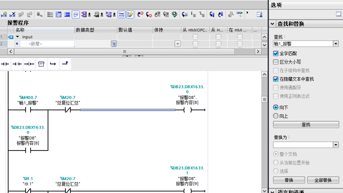 西門子PLC的搜索方式只能用Ctrl+F來搜索嗎?還有沒有其他搜索方式?感覺不好用,沒有三菱,基恩士的方便還有Ctrl+E,好像不能所有程序搜索,只能當前頁面程序段搜索,請各位大師指導一下