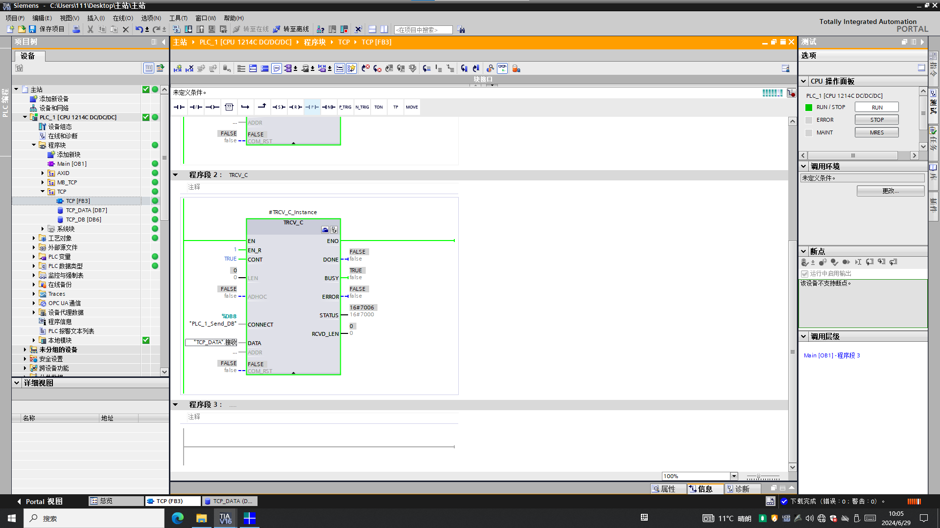 1214做客戶端,然后調試助手做服務器,通信是連上了,就是我如果把接受到的區域設8個字符,那我用調試助手發的字符必須湊齊8個字符,然后DB塊里才會顯示出來,怎么才能做到實時發送實時顯示?