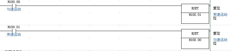 我的梯形圖如圖 要求是勻速和變速能夠互相切換     那么對應的 勻速 變速兩個按鈕的開關類型怎么設置呢?