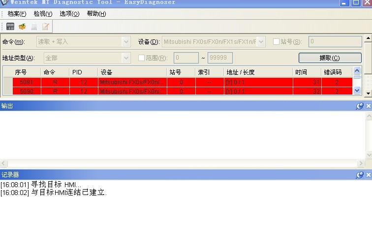 [upload=1] 現在手上有一臺FX1S的PLC因為手上沒有觸摸屏,想用EB8000和PLC之間做在線模擬,可是老是聯接不上,各種連接參數也設置為一樣了,所用的通信線就是USB轉RS232的那種線,目前不知道是通信線的問題還是自己設置的問題,傳一些我的設置圖和E8000界面顯示的通信錯誤,高手幫忙看看