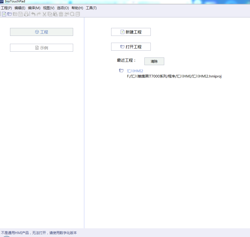 用匯川觸摸屏InoTouchPad軟件打開IT7000文件時(shí)提示:不是通用HMII產(chǎn)品,無法打開,請使用數(shù)字化版本,到官網(wǎng)也沒找到,有大佬知道是怎么回事嗎?