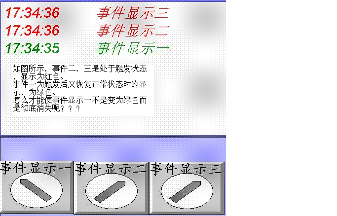 然后在故障顯示窗口上添加事件顯示元件,想通過事件顯示故障產生的原因及排除方法。
