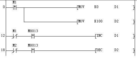 計數器就可以實現,從M8200起,有好多特殊M,這些M的ON或者OFF能決定C200起是遞減還是遞增。