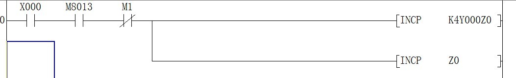 同樣地,INCP K4M0Z0,將K4M0Z0看成一個(由位元件組成的)數據寄存器,執行一次該條指令,則K4M0Z0的內容加1。