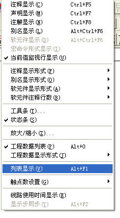 2 當您的程序以梯形圖表示時,選擇顯示菜單下的列表顯示可以切換至指令表