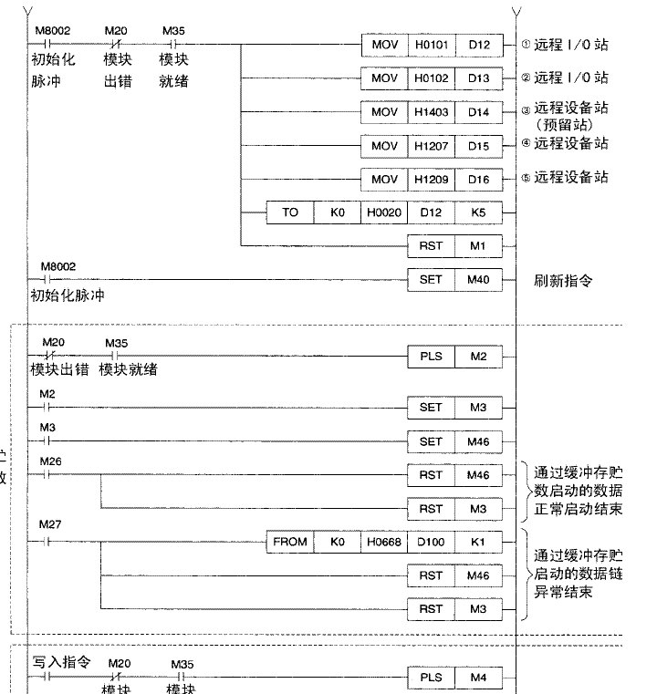 若在通訊之間,沒有主站控制遠程站輸出,或是遠程站控制主站輸出,則操作程序不寫.