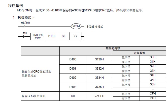 ![]() 我接觸3U的PLC 看了3U的指令手冊 RTU通信的時候不用像以前寫一大堆 的CRC校驗程序,用指令CRC就可以了 ,但是我把指令用上去了但是CRC指令算不出校驗碼!我不知道哪里出了問題,請好心的師傅 能不能寫個用CRC指令算校驗的樣本程序呀!先謝謝啦! |