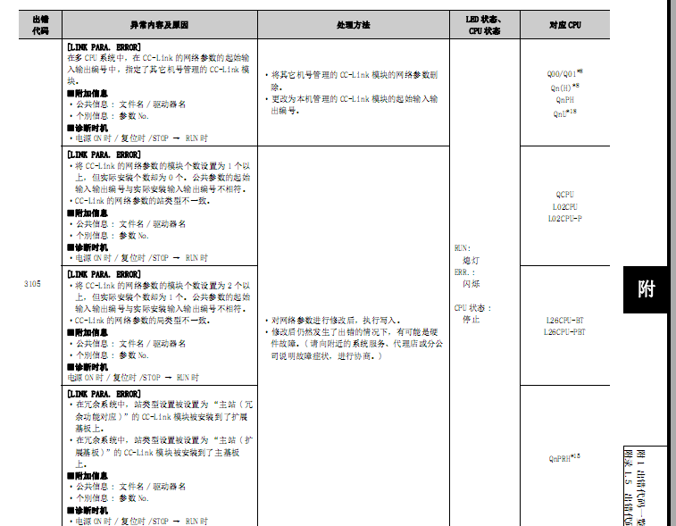 當(dāng)我打開(kāi)PLC是 Q系的的CPU ERR不停的閃爍。 我查錯(cuò)誤代碼為3105。也看了用戶手冊(cè),小弟我還是解決不了。往大神幫幫忙。(不知遠(yuǎn)程設(shè)備站是否需要設(shè)置)