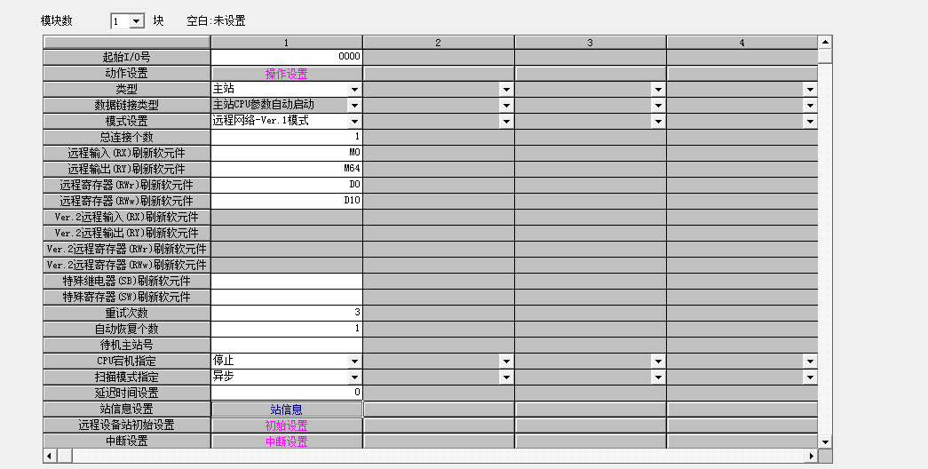 我用一臺(tái)Q00UCPU的PLC與一臺(tái)FX3U進(jìn)行通信。用的是CCLIK。模塊是QJ61BT11N與32CCL。我的起始I/O號(hào)設(shè)置為0000 。網(wǎng)絡(luò)模式設(shè)置為V1模式。連接總數(shù)為1