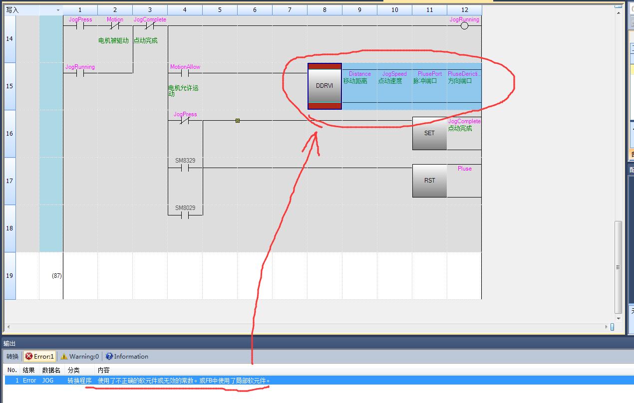 “使用了不正確的軟元件或者無效的常數,或FB中使用了局部軟元件,求大神解救,fb是從另外一個沒有錯的程序中拷過來的。