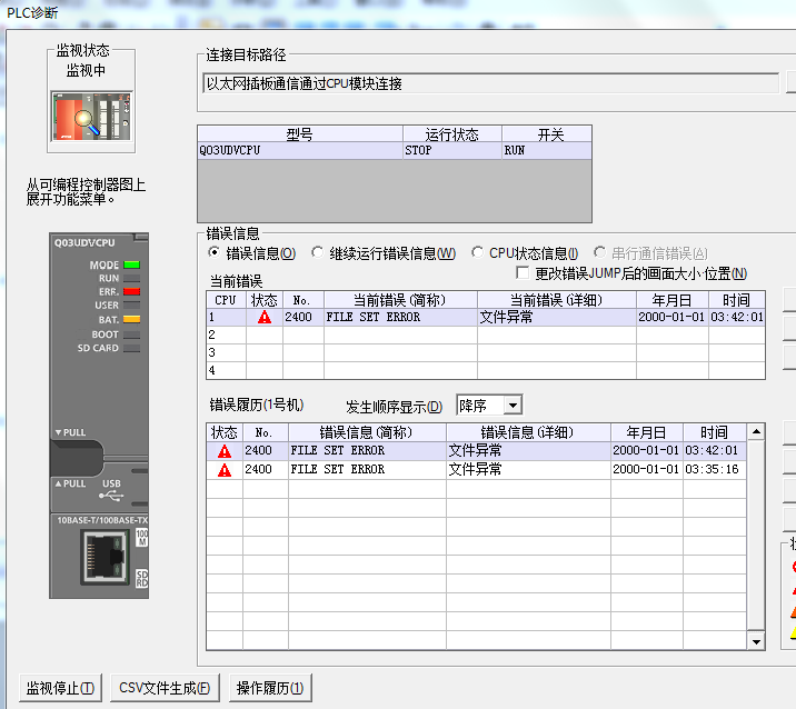 三菱的q03udvplc 錯誤代碼2400 不知道怎么弄求幫助