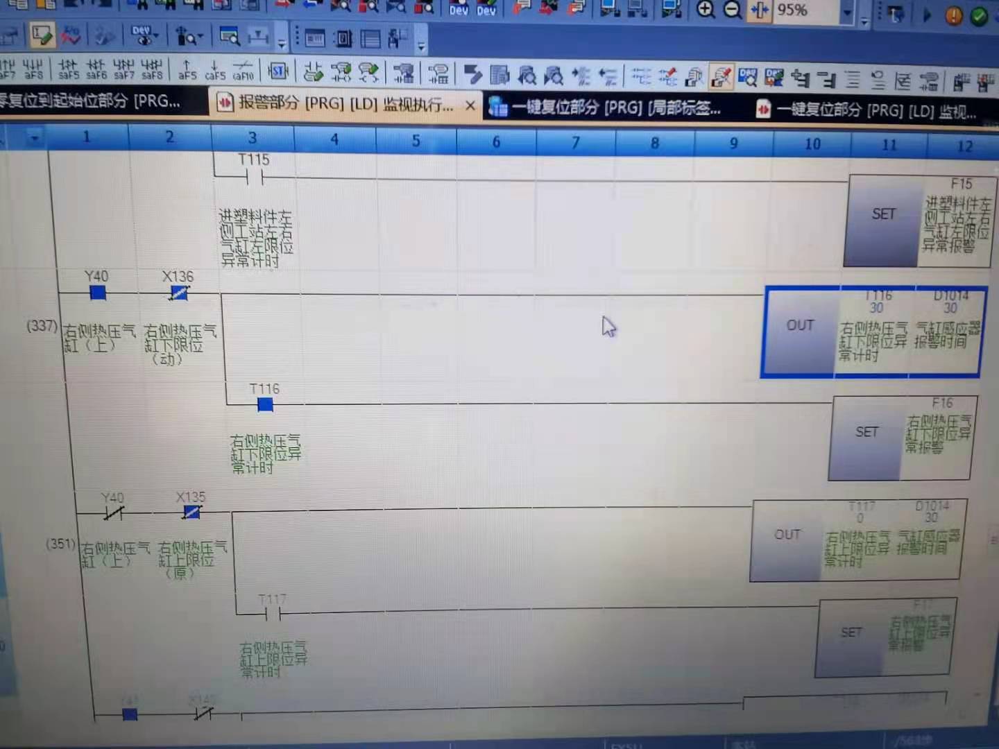 如圖 上機(jī)調(diào)試的時(shí)候 發(fā)現(xiàn)5U的報(bào)警器F 當(dāng)?shù)谝淮斡|發(fā)以后 復(fù)位掉后 即使觸發(fā)條件滿足也不會(huì)觸發(fā)報(bào)警 第一次用三菱5U的