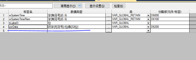 //一些參數占用2個字。讀出和寫入如果用ST文本編程方式實現?最上邊的兩行如何實現?