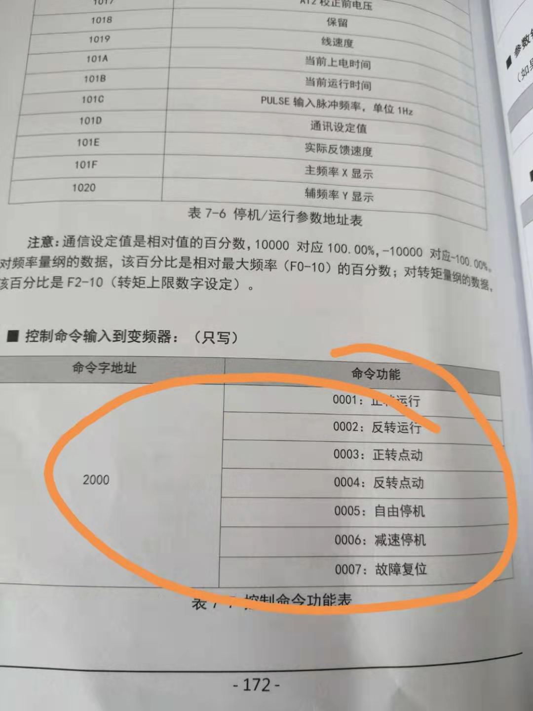 向2000這個(gè)地址里發(fā)送0001指令,使變頻器正轉(zhuǎn)